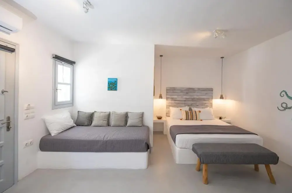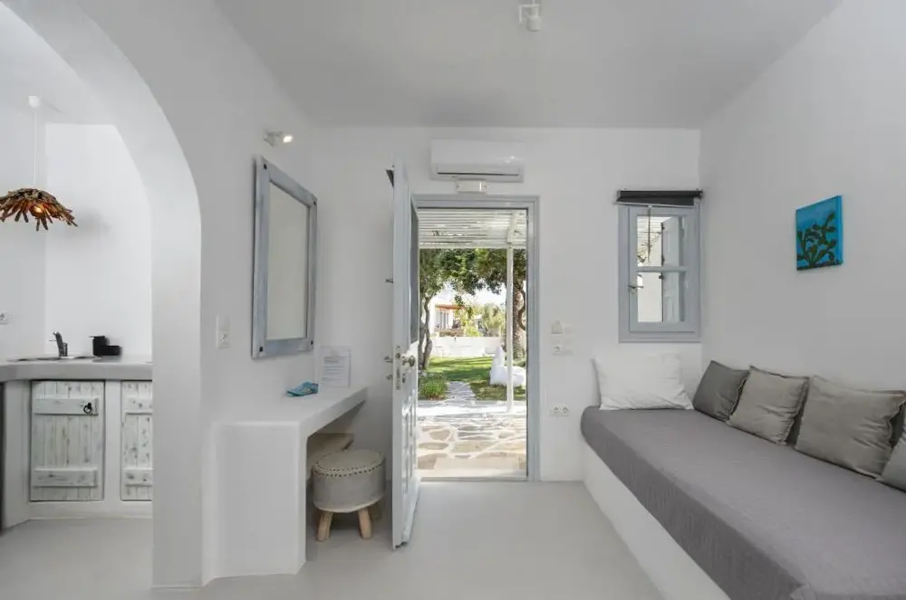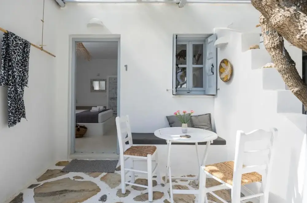 Terrasse et jardin Sun: Flisvos Beach Garden à Naxos propose une terrasse solaire et un jardin luxuriant. Les clients apprécient le wifi gratuit tout au long de l'appartement. Espaces extérieurs: La propriété dispose d'un coin salon extérieur et d'un patio, parfait pour la détente. Équipements: L'appartement comprend la climatisation, une kitchenette, un balcon et une salle de bain privée. Les commodités supplémentaires comprennent une machine à café, une télévision et une insonorisation. Emplacement: Situé à 3281 pieds de l'aéroport national de Naxos Island, l'appartement est près de la plage d'Agios Georgios (quelques pas), de Portara (1,2 mi) et du château de Naxos (16 minutes à pied). Les sports nautiques et la navigation de plaisance sont disponibles dans les environs. Très bien évalué par les invités.